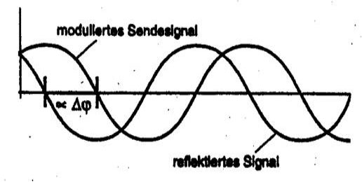 核心部件激光測距傳感器精度直接影響系統精度,采集儀傳感器激光探頭均采用進口探頭,其測距方式為相位式測距,相位式激光測距儀是用無線電波段的頻率,對激光束進行幅度調制并測定調制光往返測線一次所產生的相位延遲,再根據調制光的波長,換算此相位延遲所代表的距離。即用間接方法測定出光經往返測線所需的時間,如圖所示。相位式激光測距儀一般應用在精密測距中。由于其精度高,一般為毫米級。
